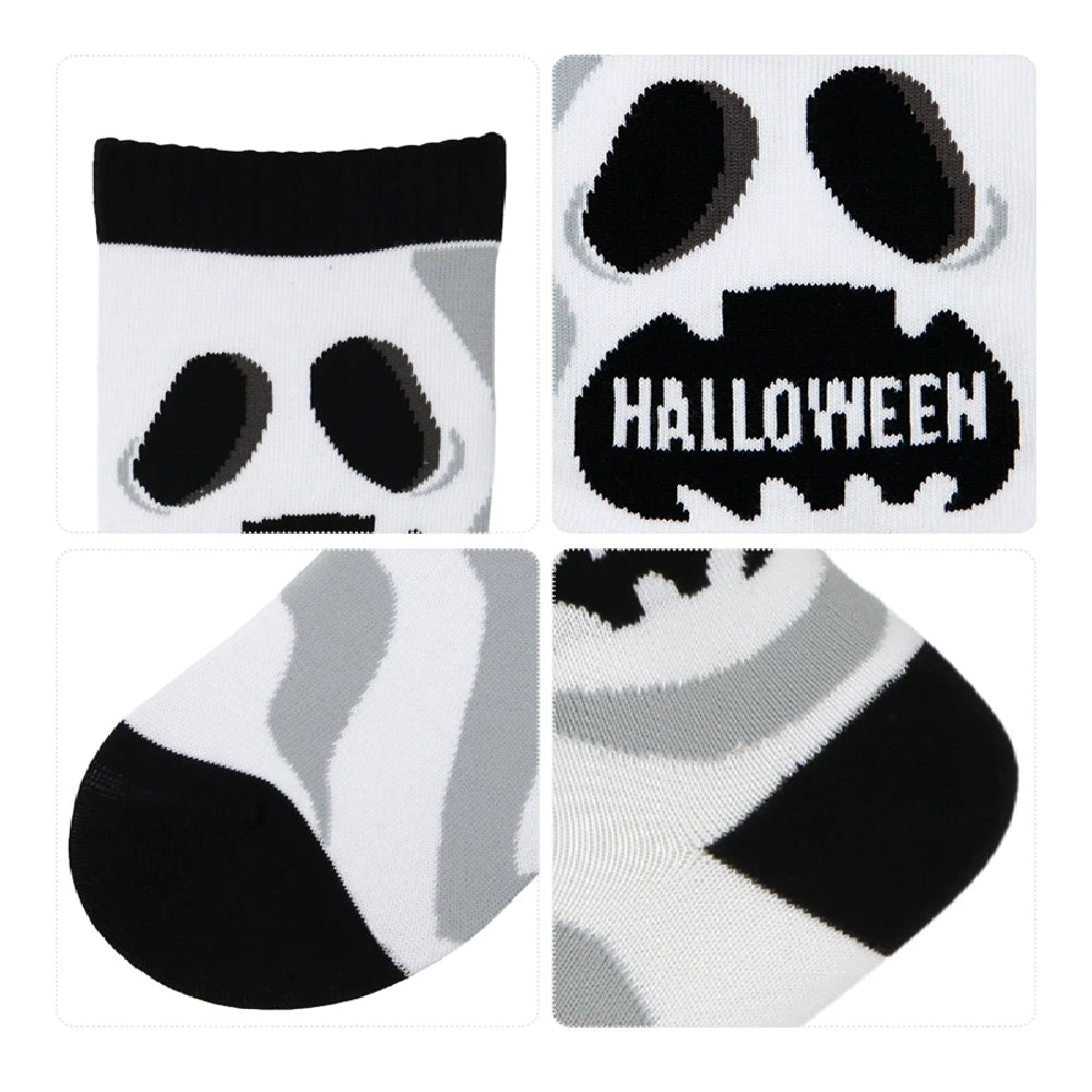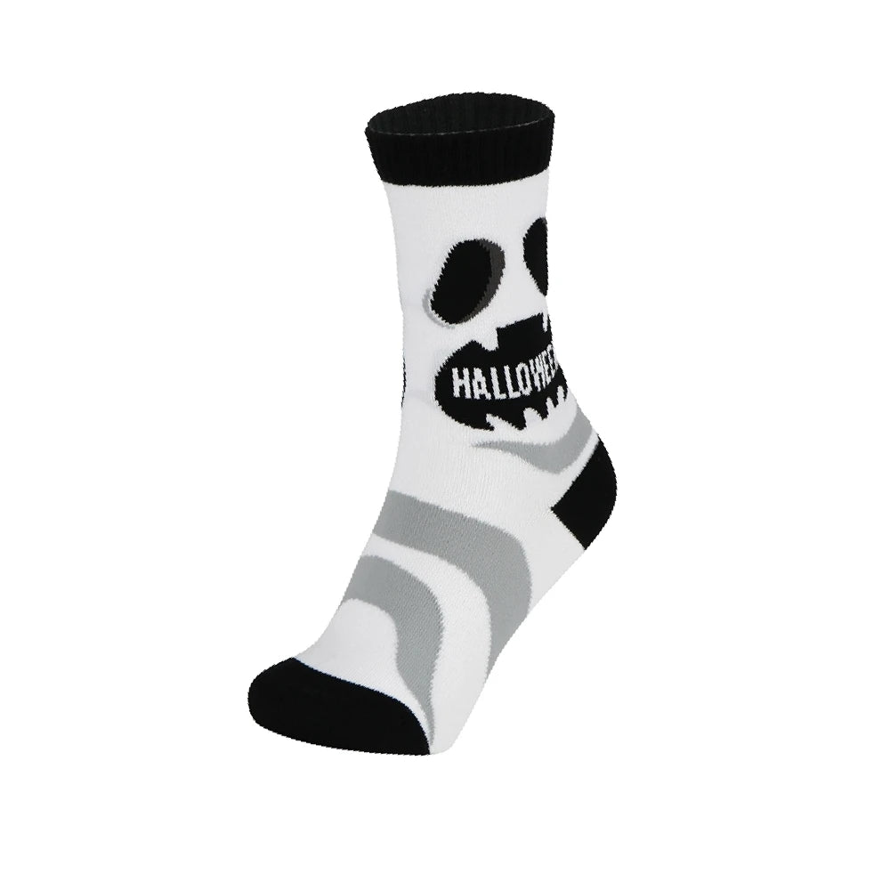 Pattern: Black and white skull design, spooky fun for Halloween or casual wear.