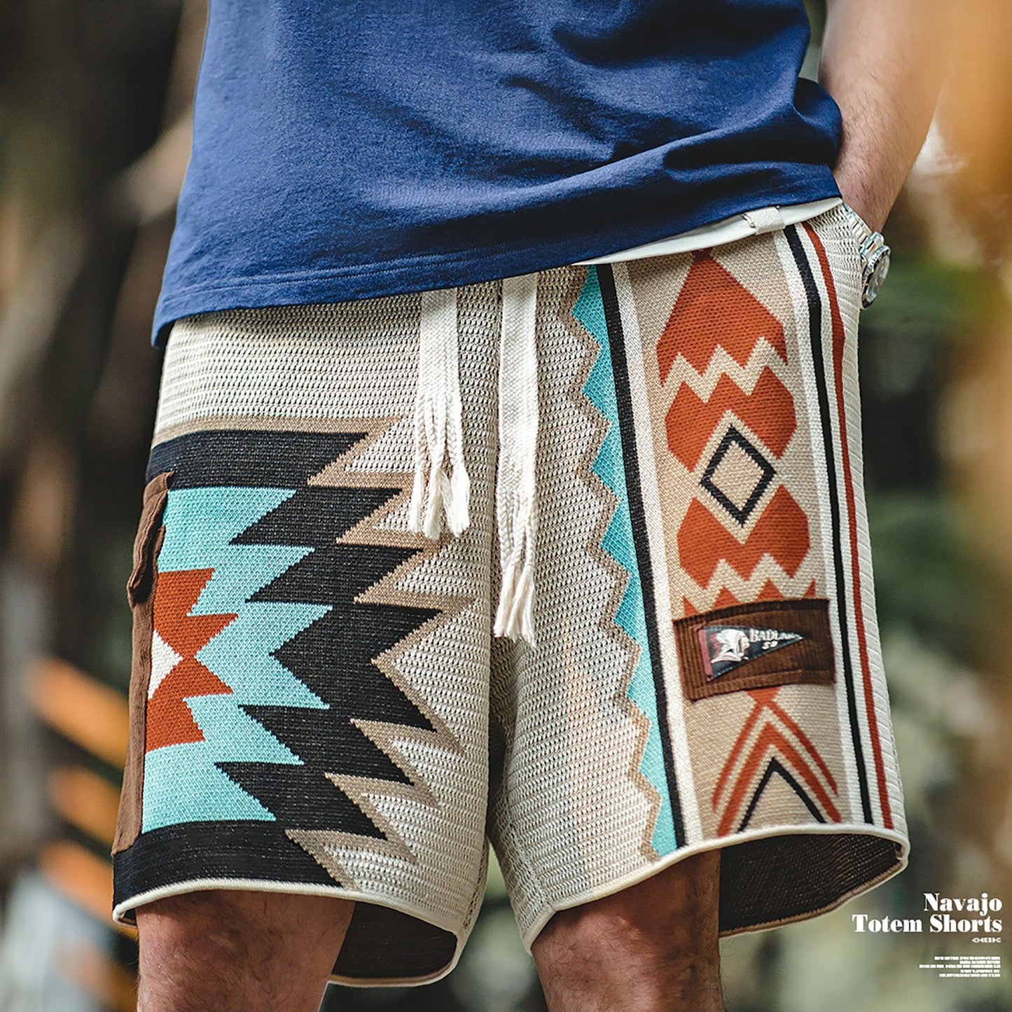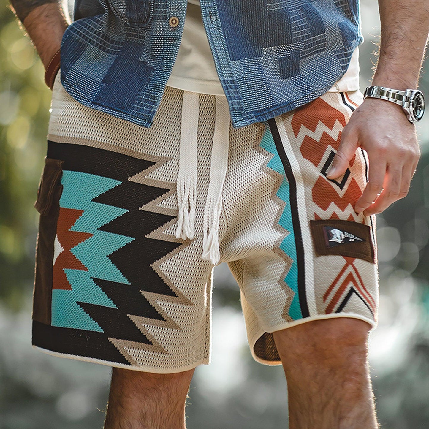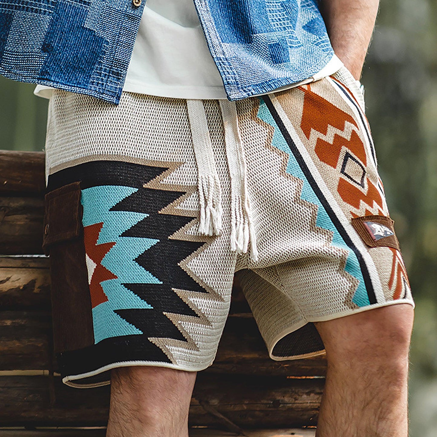 Navajo Inspired Knit Cargo Shorts