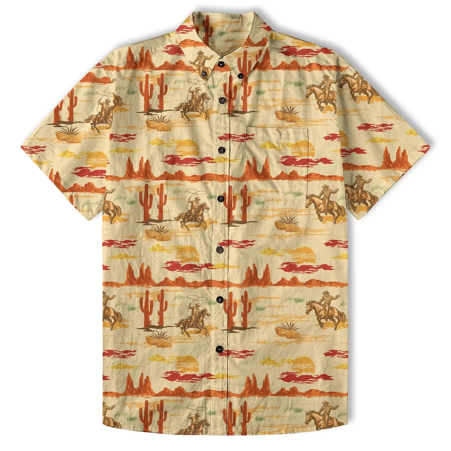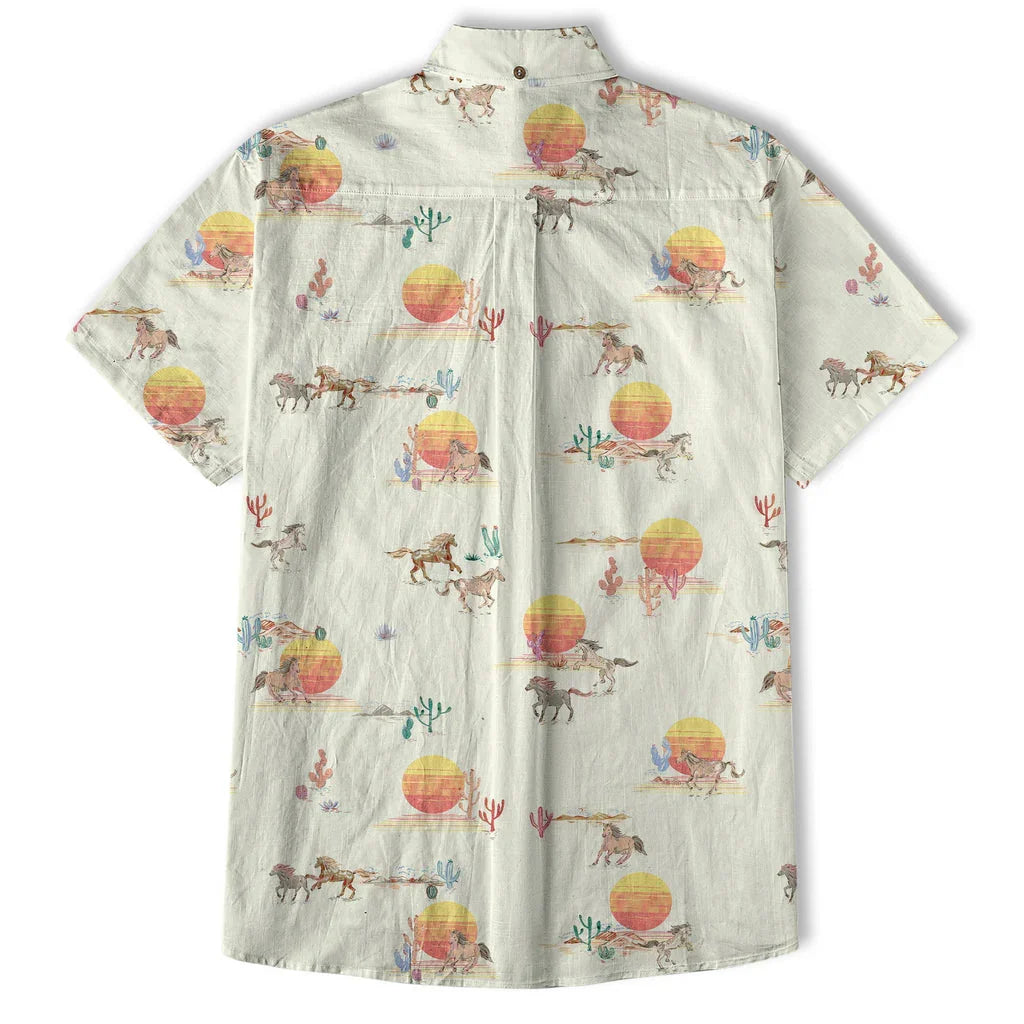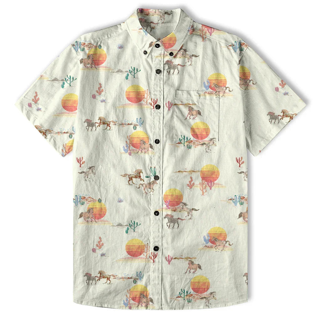 Men's Horses Running Desert Western Hawaiian Shirt Desert Summer Beach Aloha Shirt