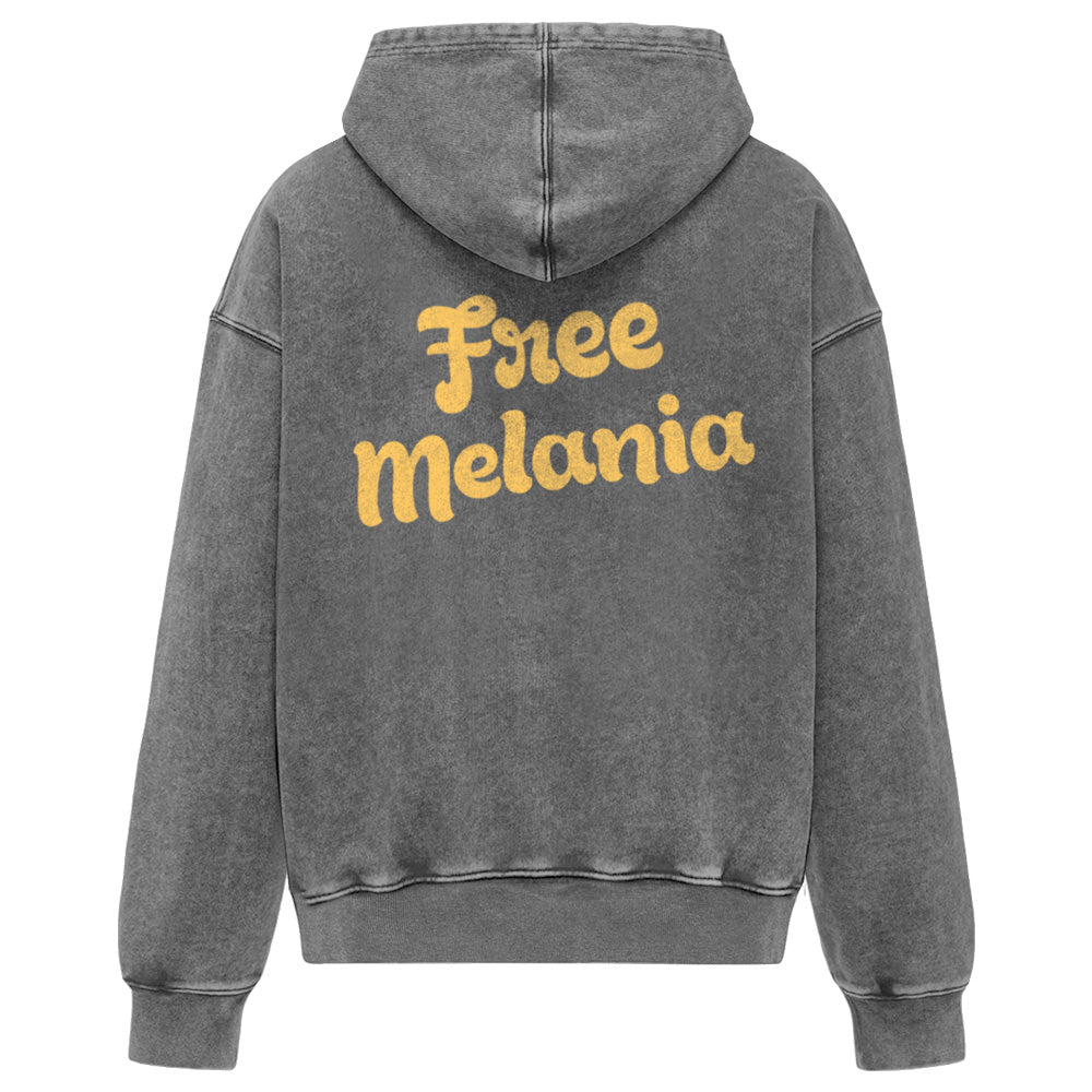 Pattern: Simple vintage hoodie with bold “Free Melania” print.