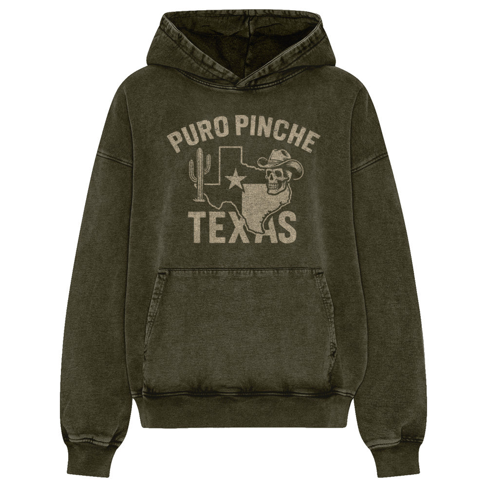 Pattern: Bold Texas-themed hoodie with skull and cowboy hat graphics.