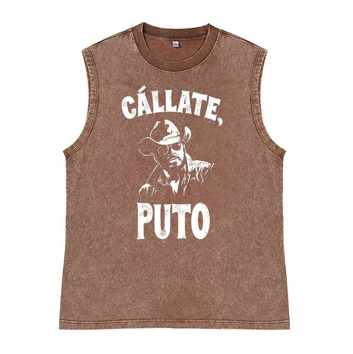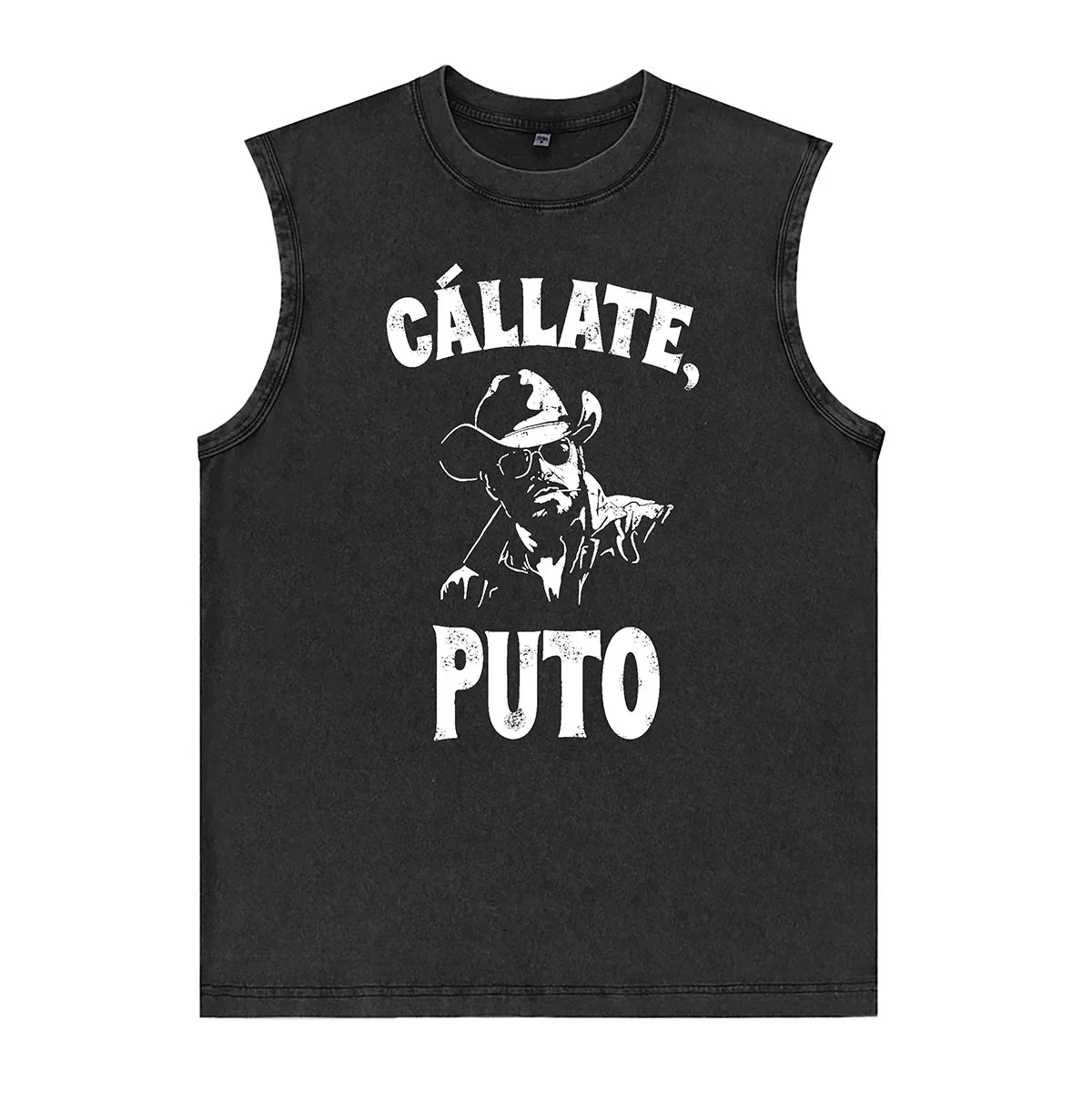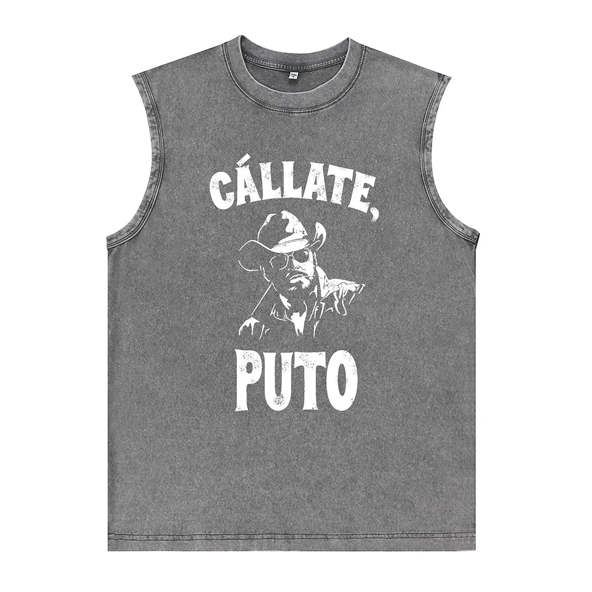 Men's 100% Cotton Sleeveless T-shirt - CÁLLATE, PUTO Cowboy Style Graphic