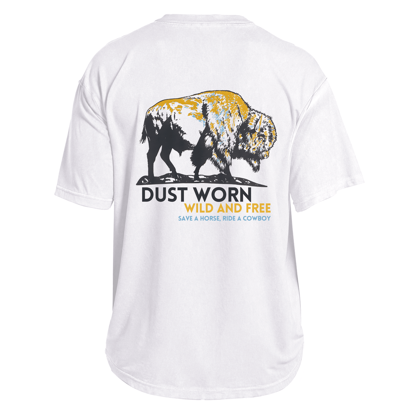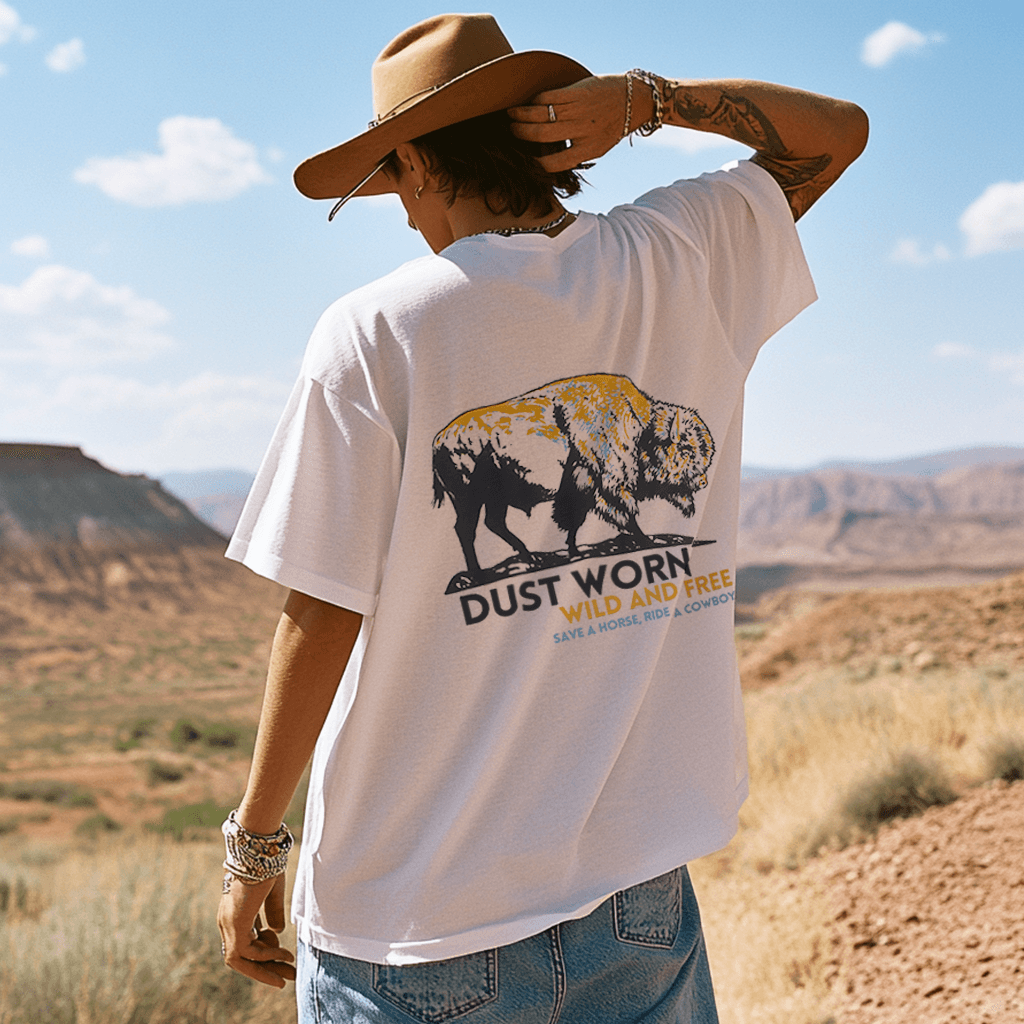 Pattern:Bison, Western Style, Distressed Vintage, Cowboy Culture, Freedom Slogan