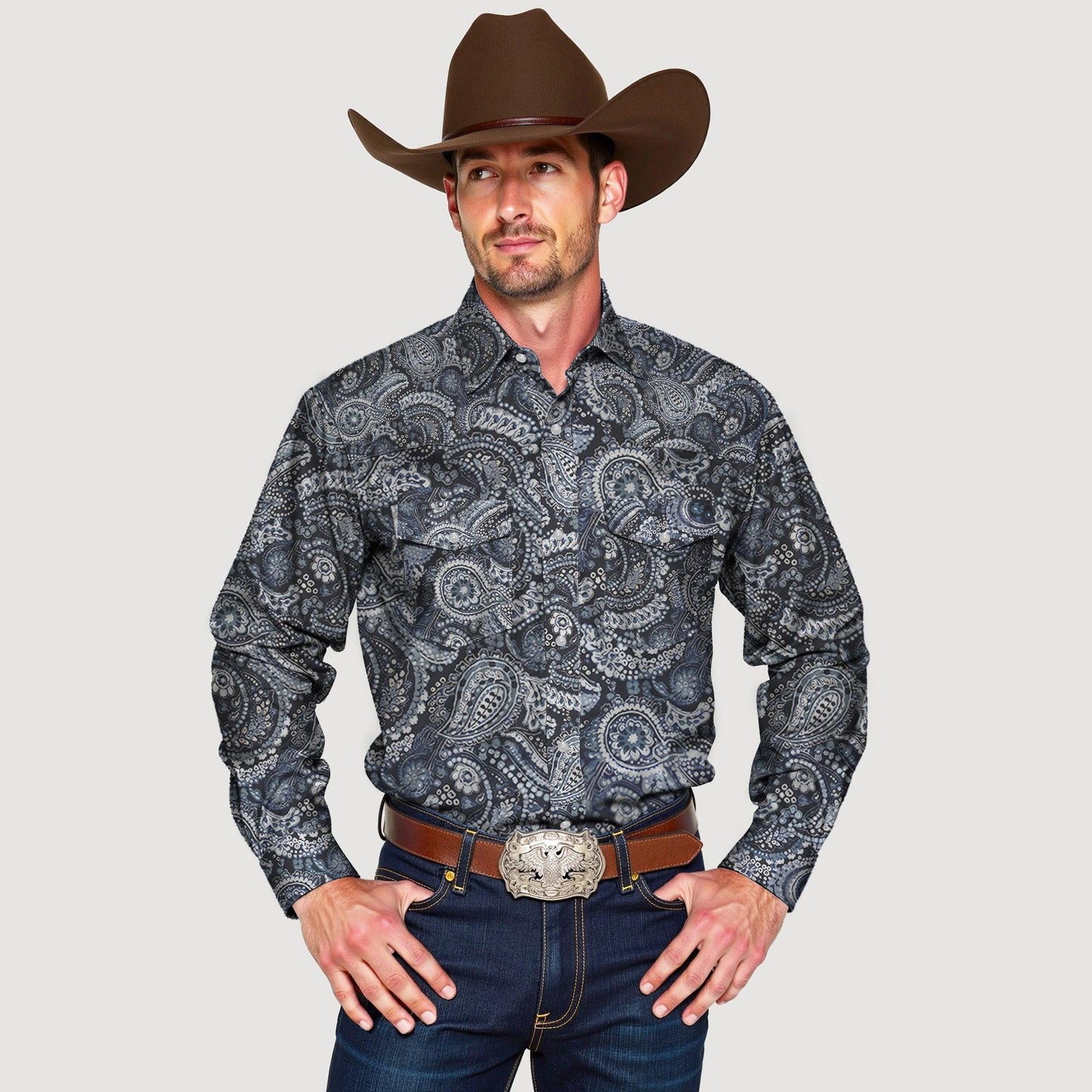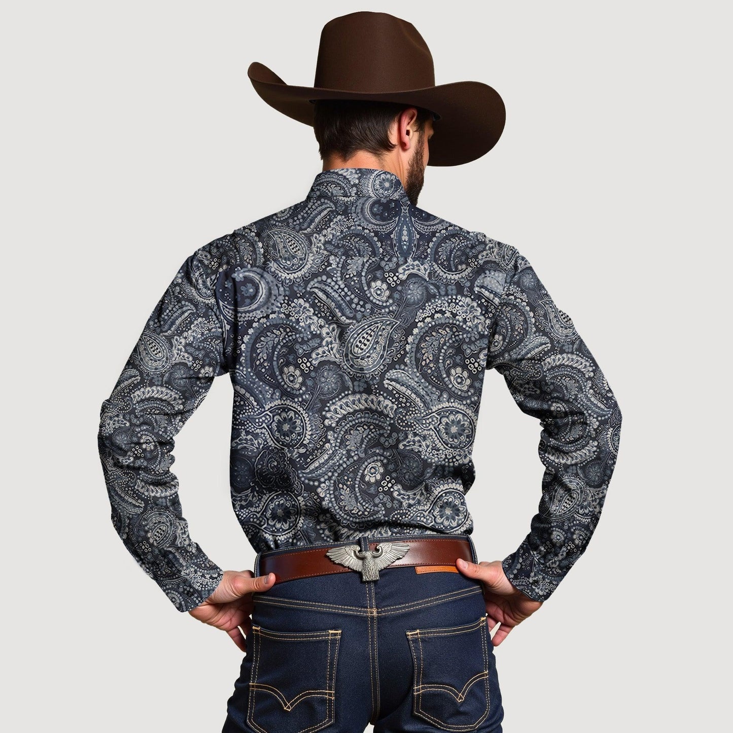 Men's Paisley Petal Print Western Shirts