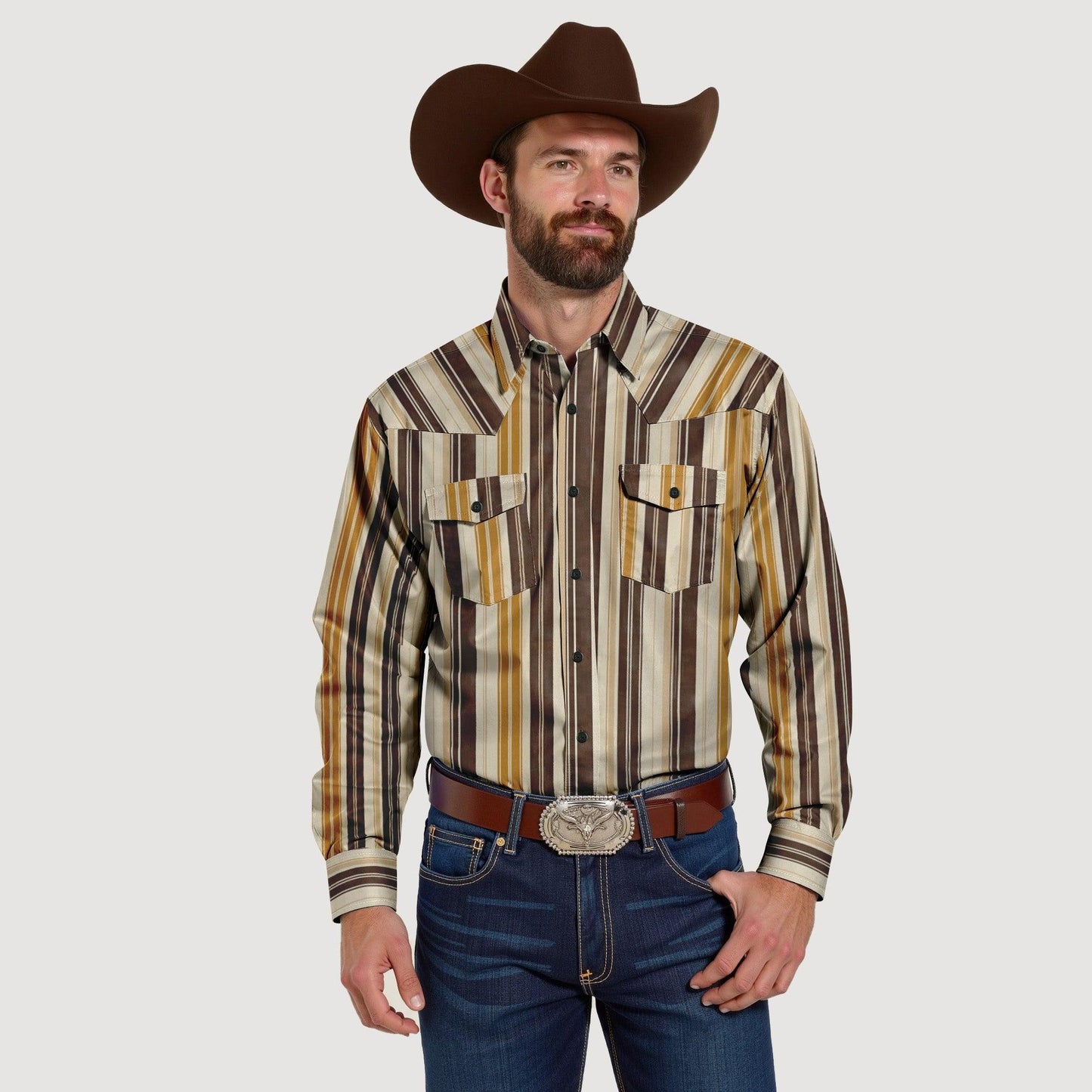 Men's Western Striped Long Sleeve Shirts